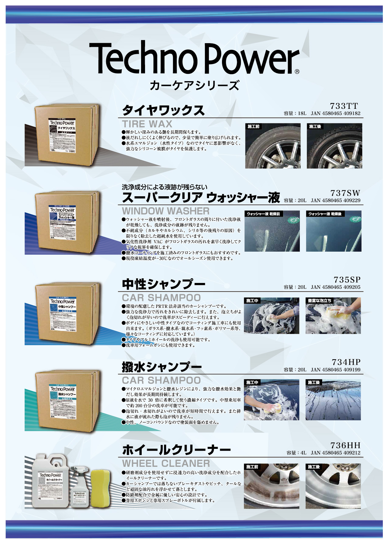 TechnoPower Car-Care Chemicals Shampoo Window Washer Fluid Tire Wax SDS (Safety Data Sheet) Flyer (PDF)